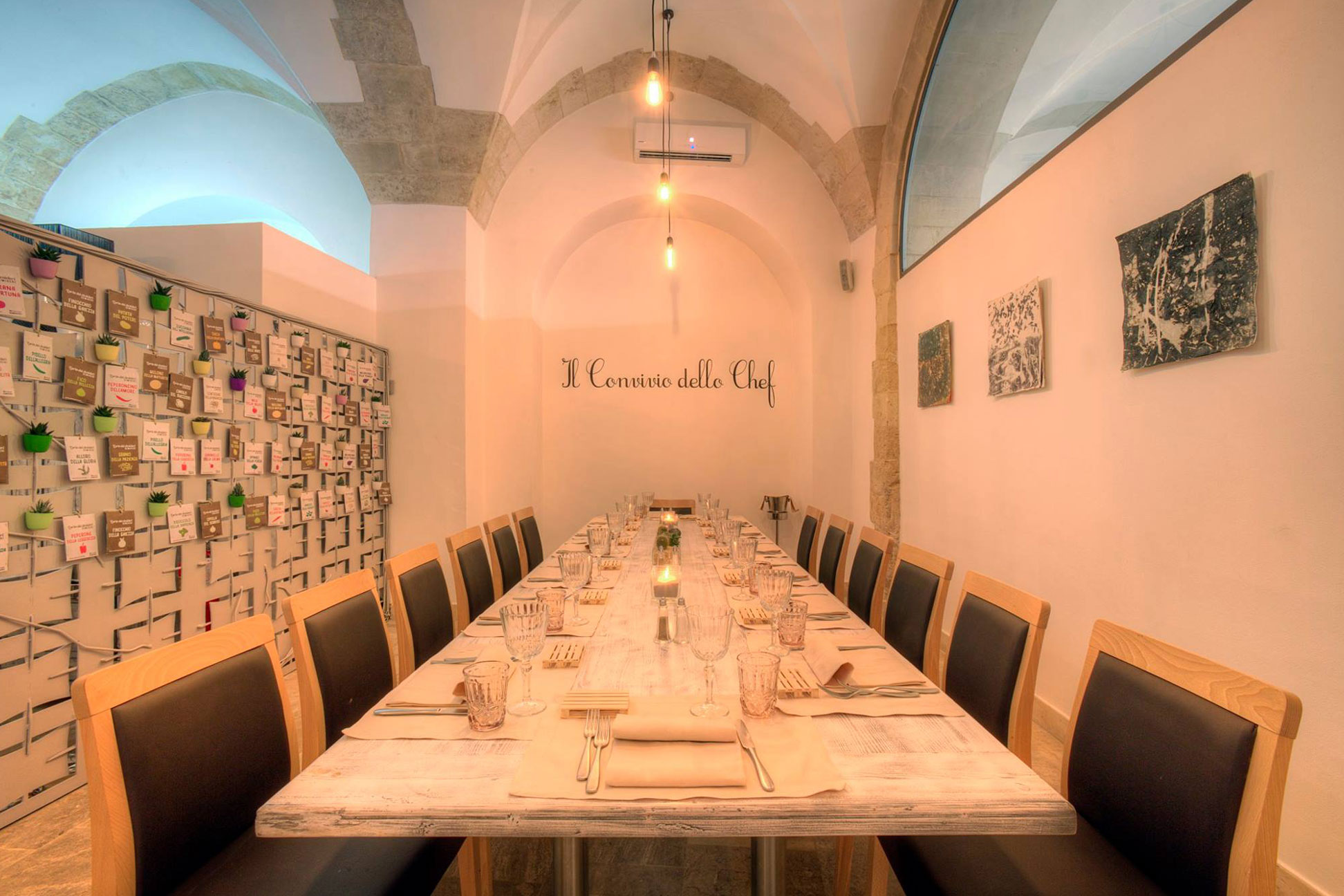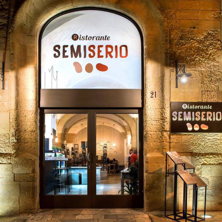 Il nome ha radice nell’ironia: è frutto della semina dei prodotti del Salento nel terreno fertile della fantasia culinaria dello Chef Patron. E’ ‘SEMI-’ perchè germoglia dalla cucina povera salentina di cui conserva gli ingredienti e i rituali. Legumi, verdure, cereali sono i protagonisti, insieme alla carne e il pesce, di pranzi, cene e aperitivi sfiziosi. Di ‘-SERIO’ conserva tutta la quarantennale esperienza e la professionalità dello Chef e un’area dedicata alla ristorazione alla carta.